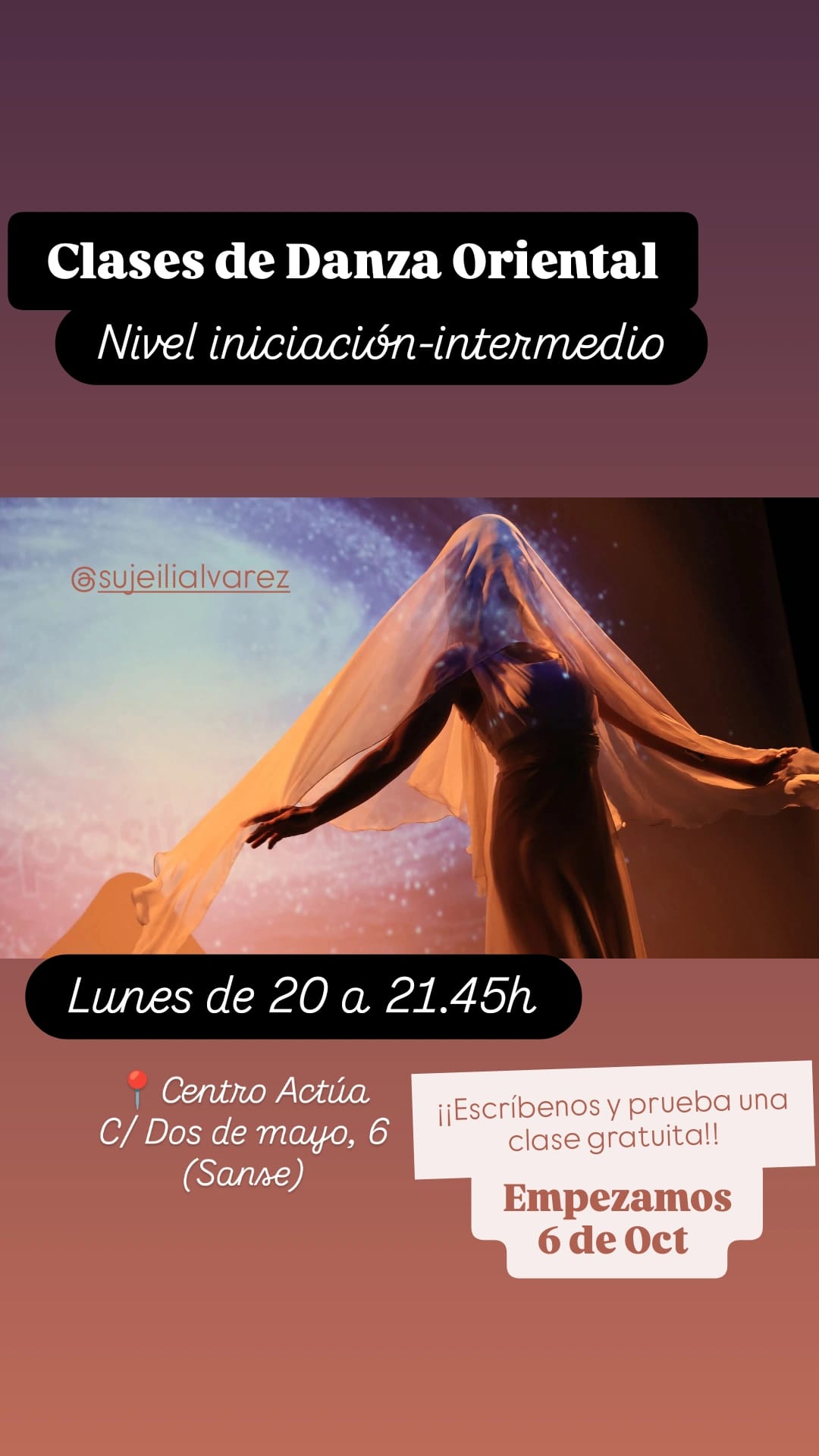 Estas clases son perfectas para iniciarse en el mundo de la danza oriental. Se aprenderán pasos básicos, postura oriental y conocimientos generales de esta danza, y en el caso del nivel intermedio, además empezarás a trabajar con elementos y a aprender sobre ritmología. Es un momento de respiro y reencuentro contig@ mism@ que te ayudarán a evadirte de la rutina.